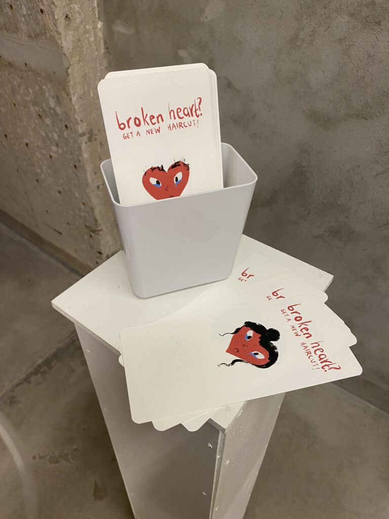 LIEBE – Ausstellung im Kunstbunker Broken heart? Get a new haircut! Installation mit Drucken, Spiegel und Schere. Vorheriger BeitragWorkshops