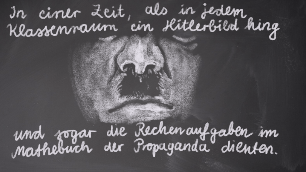 Typografie bringt eigene Bedeutungsnuancen mit sich. Ich wählte eine Handschrift aus, weil es gut zur Schule passt. Originalgetreu und historisch akkurat wäre natürlich Sütterlin gewesen – aber das können nur noch wenige Leute lesen, meistens Archivar*innen, Historiker*innen und eben jene alten Menschen, die es noch in der Schule gelernt haben. Daher fiel die Wahl auf die lateinische Ausgangsschrift.