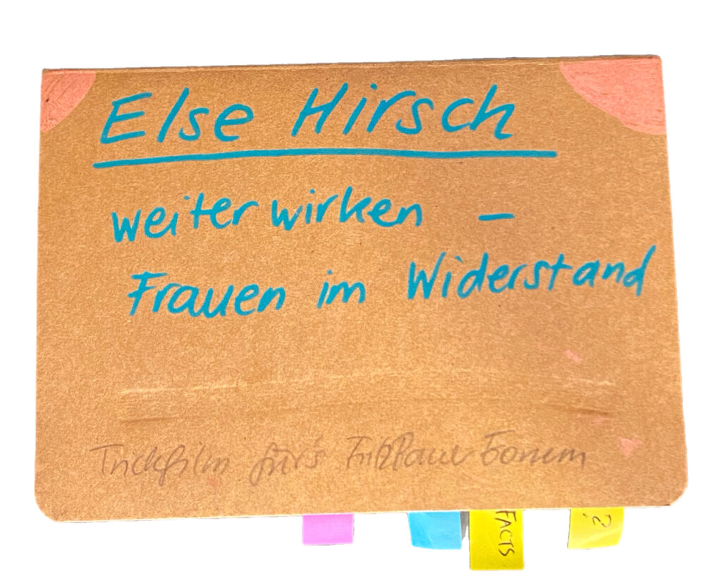 In unserer Recherche für das Projekt haben wir uns als maßgeblichen Ausgangspunkt auf das Buch Wider das Vergessen: Widerstand und Verfolgung Bochumer Frauen und Zwangsarbeiterinnen 1933-1945 gestützt. Es ist eine Sammlung der vielfältigen Biografien von Bochumer Frauen im Widerstand gegen die Nazis. Eine, die mich ganz besonders berührt hat, war Else Hirsch.