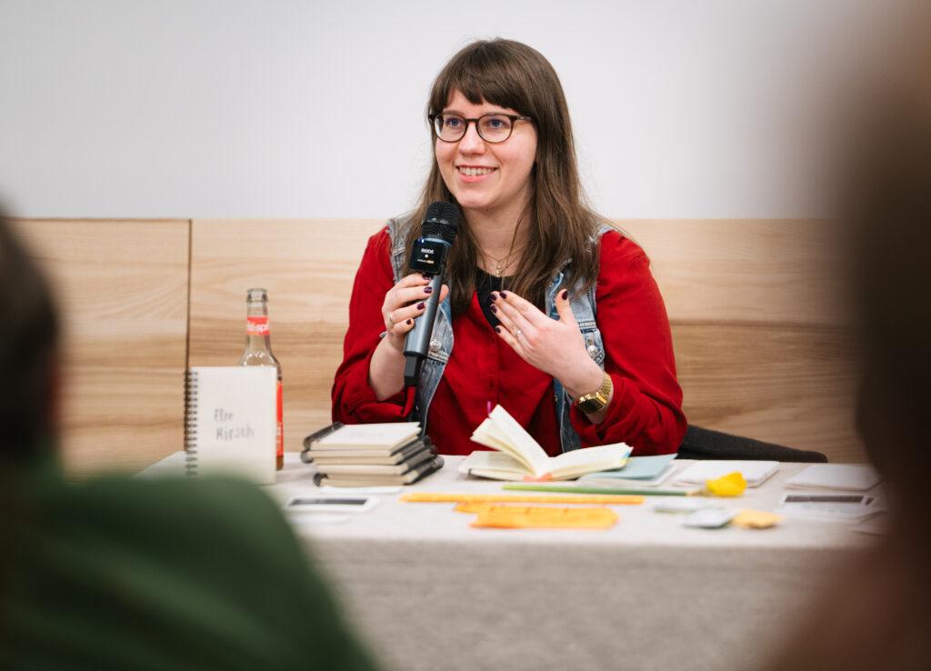 Schnell war für mich klar, dass ich zu Else Hirsch arbeiten wollte. Und dass es ein Trickfilm werden sollte. Ich recherchierte weiter zu Else Hirsch und bekam langsam ein Bild von ihr als Mensch. Schrullig, streng aber fair, ordentlich, eher still, gewissenhaft, unvorteilhaft gekleidet, „altjüngferlich“ – das sagte man ihr so nach. Ich sammelte alles, was mir für den Trickfilm wichtig schien, in einem Notizbuch.